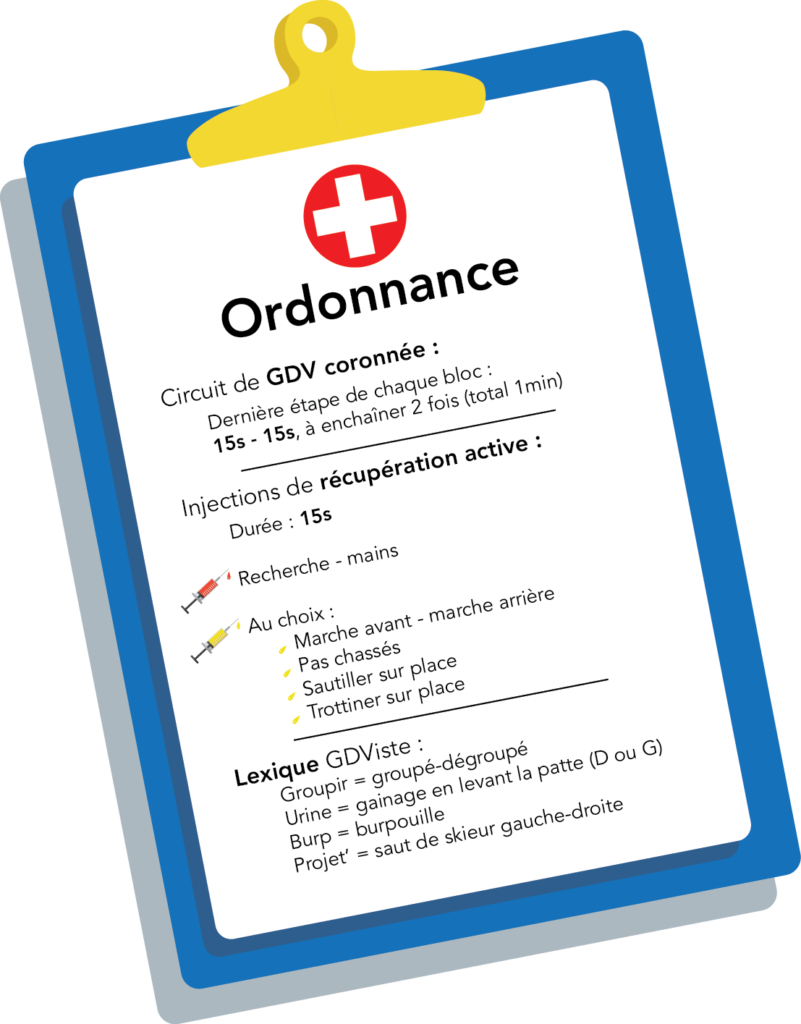 – Enchainer les 3 BLOCS (1+2+3) en mode GAZ ( NLR = « nique la récup » ) = 12′
