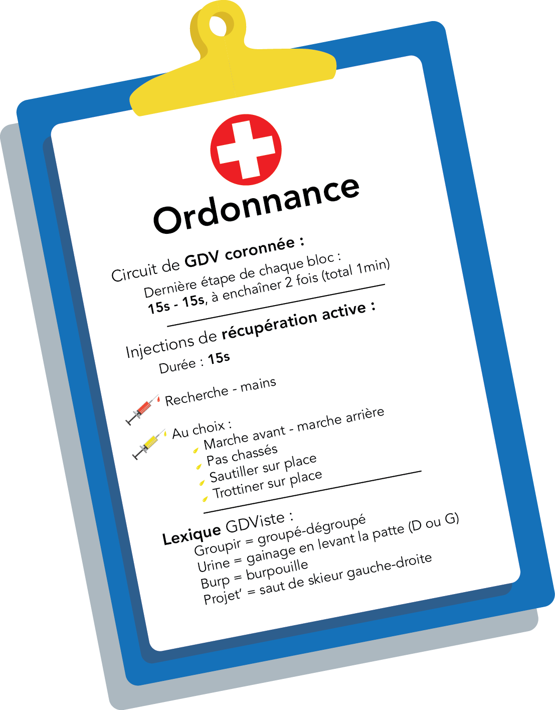 – Enchainer les 3 BLOCS (1+2+3) en mode GAZ ( NLR = « nique la récup » ) = 12′